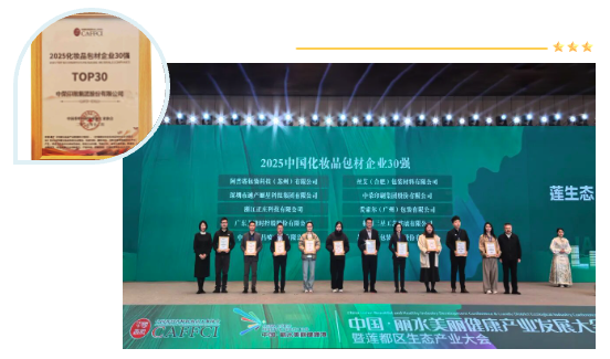 2025年12月30日, 在浙江丽水由中国香料香精化妆品工业协会发布的《2025年中国化妆品包材企业30强》,中荣股份位列Top30排行榜前列,纸基包材细分品类首位。